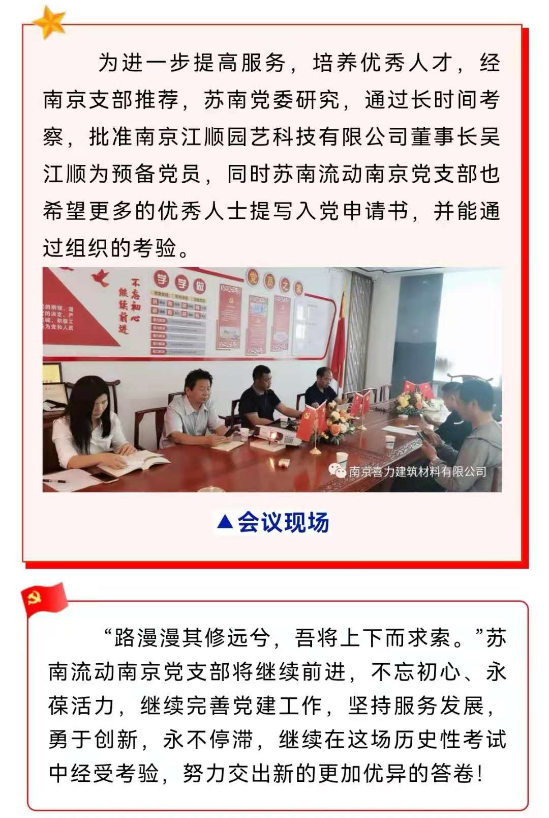 蘇南流動(dòng)南京黨支部慶祝建黨100周年活動(dòng)暨支部黨員會(huì)議圓滿落幕